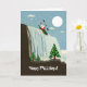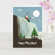 Happy FALLidays! Santa kayaking a waterfall, Christmas paper greeting card. Card features an illustration of Santa Claus holding up his paddle and going over a waterfall in his kayak. A big moon, snow, and pine trees fill in the background. Inside verse: Have some holiday fun, but don't get swamped. Art, image, and verse copyright © Shoaff Ballanger Studios, 2022.