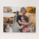 Charming family themed photo collage puzzle printed with four of your photos. One larger photo, and three smaller square photos. Add some snapshots from your life of your family and happy moments. Family is written in the corner in a pretty script, with your family name and year established as well in elegant letters. Show off your family memories with a personalised photo collage puzzle! This unique puzzle features a template where you can upload your favourite family photos and add your family name and the year you were established. It's the perfect way to celebrate your family's history and bond over putting the puzzle together. The puzzle provides hours of fun and entertainment for the whole family. It's also a great way to keep your family memories alive for years to come. Frame it and hang it on the wall once you've completed it!
