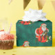 A jolly fellow, is Father Christmas! Here we have the man himself dressed in his red Santa suit, dipping into his Santa sack of goodies for a present for you! A very festive pattern of dozens of Santas, set against a green background.