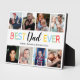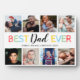 Cute fathers day picture plaque featuring a plain white background that can be changed to any colour, 8 family photo collage, a colourful "best dad ever" typographic design, and the kids names.