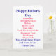 A list of things a Father does, Counsellor, Sports Coach,Taxi Driver, and more. Thanks Dad. With a joke inside too. Add name and your own personal message if you want.