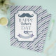 Cool retro happy father's day illustration with moustache on striped pattern. Click Customise button to add your personal message.