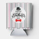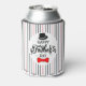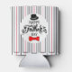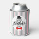 Say "Happy Father's Day", with this can cooler. The whimsical type fonts are accented with a black hat and a red bow tie. The entire design is inside of white oval that's overlayed on a red, black and grey pinstriped background. This design is on both sides of the can cooler.