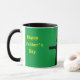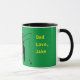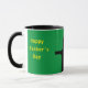 Father's Day mug with dad and son fishing off the pier can be personalised with son's name.