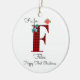 Happy first Christmas F lumberjack robin tree Ceramic Ornament