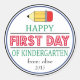Pencil Happy First Day Of Kindergarten / Kindergarden Favour Labels / Stickers (Green / Blue / Red / Black / White)...These fun and cute happy first day of school labels / stickers are ideal for back to school treats and gifts for students. Whether you're celebrating the first day of kindergarten, first (1st) grade, second (2nd) grade, third (3rd) grade, fourth (4th) grade, fifth (5th) grade, sixth (6th) grade, seventh (7th) grade, eighth (8th) grade, preschool / pre-school, high school, etc....these stickers are perfect for any occasion. Welcome your students or classmates back to school for a fun and educational new school year. Fully customisable...just change the name of the teacher or the student and the school year and your favour stickers are ready to be used. Great for any teacher to hand out to her classroom of new students. Also perfect for any student to bring attached to goodies for his or her new school mates in class. Available in a wide range of colours. See WindyCityStationery.com for our complete line of labels in a wide range of colours as well as matching postage stamps, thank you cards, return address labels, save the dates, graduation stickers, wedding favour stickers, and more.
