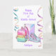 A beautiful happy first day of middle school card for your daughter, granddaughter, niece and goddaughter. The front features a backpack, notebook and cute shoes along with some pastel streamers on the front of this first day of school card for her. You will be able to easily personalise the front with her name and the inside card message can also be personalised if wanted. This is a wonderful way to support and encourage her when middle school starts.