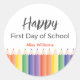 Prepare to kick off the new school year with joy and enthusiasm using our Colourful Happy First Day School Teacher Sticker. This vibrant design showcases a rainbow of pencils, making your students feel special and welcomed. Customising these stickers is simple—just fill in your details in the "personalise this template" section. These charming stickers are ideal for elementary or preschool teachers to greet their students in a fun and unique way!