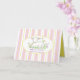 A happy first Easter to a sweet granddaughter greeting card decorated with a little lamb sitting in a patch of wildflowers with a background of pink, white, and yellow stripes. You can customise the text to fit your needs.
