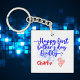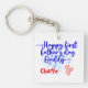 For the first time, dad, this 'Happy First Father's Day, Daddy' text and hearts image in blue with a monogram for the baby's name in red, from a baby boy. Best Daddy Ever. Double sided key ring.