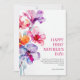 Happy First Mother's Day Elegant Floral Flowers Holiday Card features a stunning watercolor floral arrangement in shades of pink, purple, and orange, adding a vibrant yet elegant touch. The front includes the message "HAPPY FIRST MOTHER'S DAY!" in a sophisticated font, paired with a sweet and encouraging note about the journey of motherhood.