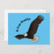 Happy flying bald eagle cartoon illustration postcard