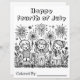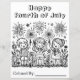 Happy Fourth of July colouring page. Cute kids holding sparklers with fireworks in the sky.