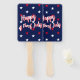Happy fourth of July script red white and navy blue stars pattern cute fun holiday party Hand fan.