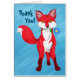 This cheerful red fox wants to give you a pretty blue flower! Text says: "Thank you!" Personalise this design by clicking the "Customise it!" button and adding or editing the text!