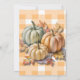 Celebrate the season with this cosy fall design featuring three pumpkins in sage green, tan, and cream surrounded by autumn leaves. The warm orange and white chequered background adds a rustic farmhouse touch, perfect for Thanksgiving décor, invitations, or seasonal gifts. A charming way to say “Happy Thanksgiving” with autumn style!