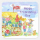 Happy Friendship Day Women Friends Dog Flowers Square Sticker