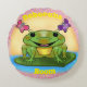 A happy frog makes up this fun pillow. Flip it over for a different look! Customisable so you can add your own text and change the background colour. This design is available on both round and square pillows. Makes a great gift!