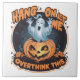 A playful ghost rises from a carved pumpkin, surrounded by bats, embodying the festive spirit of Halloween with a whimsical touch.