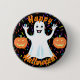 A cute cartoon ghost and pumpkins make up this fun Halloween button/pin. Customisable so you can add your own text and change the background colour. Show off your Halloween spirit with this fun design!