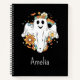 Spiral notebook with an illustration of a smiling ghost. Decorated with flowers, rainbows and bats.