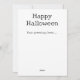 Send halloween greetings to friends, family and neighbours with this cute halloween greeting card. All text fields are customisable and deletable, just click on "personalise". You can add the names of your family members at the bottom for a personal touch. If you don´t like your handwriting, use the text field on the back to type in your greetings. However, if you want to do it by hand, delete the text in that field. Happy Halloween!