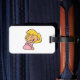 Spot your bags instantly with these happy blonde girl cartoon luggage tags. The vibrant illustration of a giggling child in a pink dress makes your suitcase stand out on any airport carousel. Durable and functional, this cheeky character design adds a touch of fun to your travel accessories. Whether for a family vacation or a solo trip, these joyful blonde girl identification tags ensure your luggage travels with plenty of personality and style.