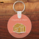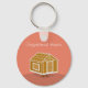 Keychain with a cute gingerbread house character. The gingerbread house is smiling as it stands, decorated in white frosting and green candy details. The words "Gingerbread House" appear above it and can be customised.