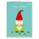 Cute Happy Gnome with Horseshoe, gold confetti and fourleaf clovers Happy Holidays Card. Text can be personalised.