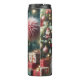 This festive close-up illustration features an adorable gnome with a long, flowing white beard and a tall, striped hat topped with a fluffy pompom. The gnome's cheerful expression and cosy sweater are set against a blurred background of a decorated Christmas tree, glowing lights, and falling snow, creating a magical holiday mood.