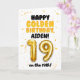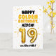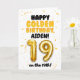 Celebrate turning 19 on the 19th, with this Happy Golden Birthday card! Designed in a bright and cheerful gold theme, this card features a fun, bold layout with confetti details and a large gold balloon number. Personalize it with a name on the front and the inside of the card to make their golden birthday extra special!