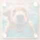 Happy Golden Retriever Swimming Underwater Glass Coaster