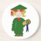 "HAPPY GRADUATION" GIRL DRESSED IN GREEN CAP AND GOWN HOLDING HIGH SCHOOL DIPLOMA