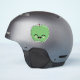An adorable kawaii green apple with closed black eyes and a big happy smile and rosy red cheeks.