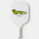 Happy green iguana cartoon illustration pickleball paddle