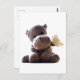 Happy Grey Hippo Holding Daisy, Cute Love Photo Postcard