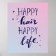 This design features the cute hair care related phrase "Happy Hair Happy Life".