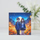 Anime couple holding hands on Halloween night surrounded by pumpkins and city lights.