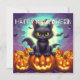 Happy Halloween Black Bat Cat Card