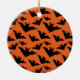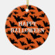 Happy Halloween black bats orange spooky pattern Ceramic Ornament