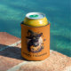 This whimsical can cooler is perfect for your Halloween Party! The can cooler has a pumpkin orange background and an graphic of a black cat wearing a witches hat and is sure to put a smile on your party guest's face. The flying bats and a carved pumpkin adds a touch of spookiness, and the overall tone is playful and fun. Below the graphic the text "Happy Halloween" is set in black with a fun halloween font. The cat is reversed on the other side. #catlovers#halloweenpartycat