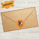 This whimsical sticker is the perfect way to celebrate Halloween! The round shaped sticker has a pumpkin orange background and a graphic of a black cat wearing a witches hat are sure to put a smile on your face. The flying bats and a carved pumpkin adds a touch of spookiness, but the overall tone of the sticker is playful and fun. Below the graphic the text "Happy Halloween" is set in black with a fun halloween font. A fun sticker to use for your Halloween party invites. #catlovers#halloweencat