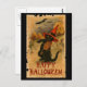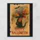 Happy Halloween Black Cat Playing Fiddle Bats Postcard