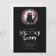 This invitation captures the essence of Halloween with a touch of feline charm. Against the dramatic black backdrop and alternating lines of stark white and light purple text, the words "spooky party" are presented in a horror movie cut-from-magazines letter font, adding an element of surprise and a touch of eerie spookiness to the overall design.