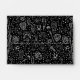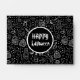 Halloween party white contour doodle pattern on a black background with label design "Happy Halloween".