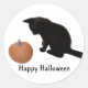 Happy Halloween Black Kitten and Orange Pumpkin Classic Round Sticker