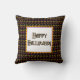 Happy Halloween Candy Corn on Black Pillow