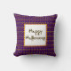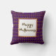 A Halloween pattern of orange, yellow and purple candy corn on a deep purple pillow with Happy Halloween in spooky letters. Click Customise It to change background colours, add your name or message, upload an image and more, even save your design for later.
