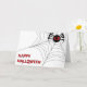 Happy Halloween Card with a black spider and big red fire eyes on a spider web. Don't forget you can customise this card any way you like!