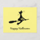 Happy Halloween, Cat On Broomstick Invitation Postcard